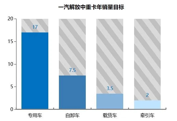 一汽解放2020年中重卡銷(xiāo)售目標30萬(wàn)輛。其中牽引車(chē)17萬(wàn)輛,載貨車(chē)7.5萬(wàn)輛,自卸車(chē)3.5萬(wàn)輛,專(zhuān)用車(chē)2萬(wàn)輛。另外,海外市場(chǎng)1.3萬(wàn)輛,2020年上半年一汽解放重卡銷(xiāo)量占年度目標的76.2%。